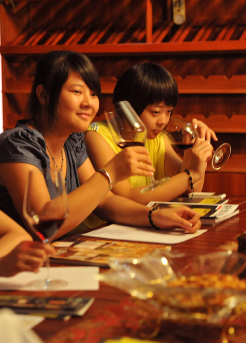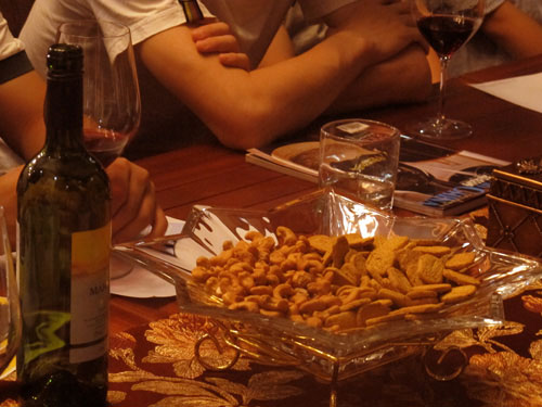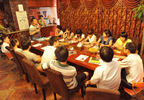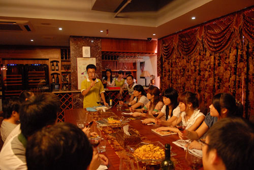暗黃色的燈光,歐式風(fēng)格的落地窗簾,充滿古典與時(shí)尚味的吧臺(tái),以及一支支遠(yuǎn)渡重洋,混合著西班牙熱情、散發(fā)著獨(dú)特幽香的葡萄酒美釀。在這個(gè)極具異域風(fēng)情和溫馨別致的“納新紅酒匯”里,有來(lái)自我公司的3位專業(yè)品酒師、紅酒代理商以及各紅酒愛(ài)好者們匯聚一堂,共同拉開(kāi)了我公司每周五下午免費(fèi)"納新.西班牙葡萄酒品鑒會(huì)"的帷幕。