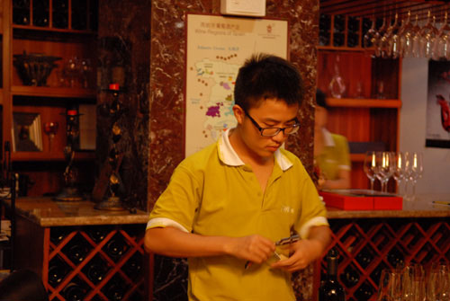 從開(kāi)瓶、倒酒到持杯我公司專業(yè)品酒師龐翊瑜一一向品鑒者們進(jìn)行講解。
