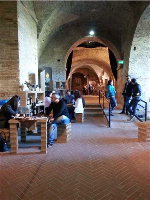 此刻目的地為阿布魯佐東部臨亞得里亞海的Chieti市的Lanciano鎮(zhèn),恰逢當(dāng)天Chieti市旅游局在該鎮(zhèn)中心的Garibaldi廣場(chǎng)一古堡地下室內(nèi)舉辦一場(chǎng)小型葡萄酒展覽會(huì)。