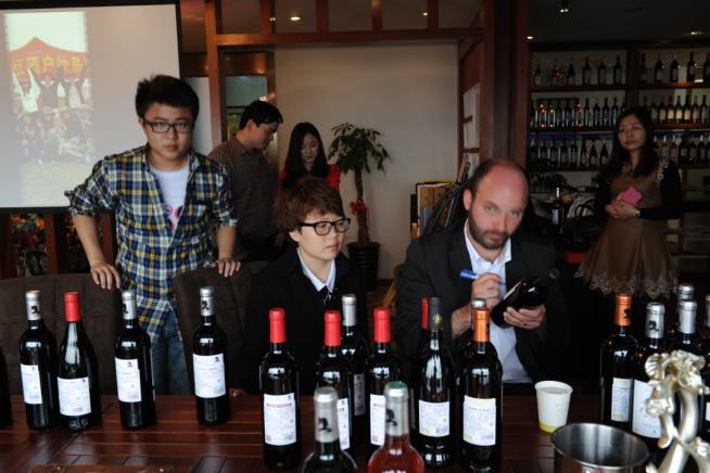 2013年4月3日下午,Anael PAYROU先生現(xiàn)場介紹圣女莊園的葡萄酒,并在會后于酒標上簽名留念,作為紀念珍藏酒。