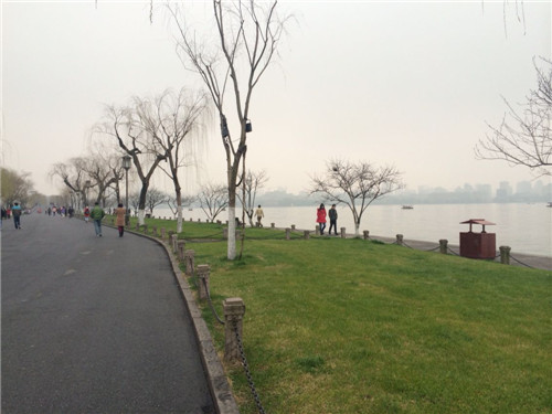 薄薄霧霾下的西湖,平靜安詳,使人內(nèi)心徹底放松,沉醉于美景之中。