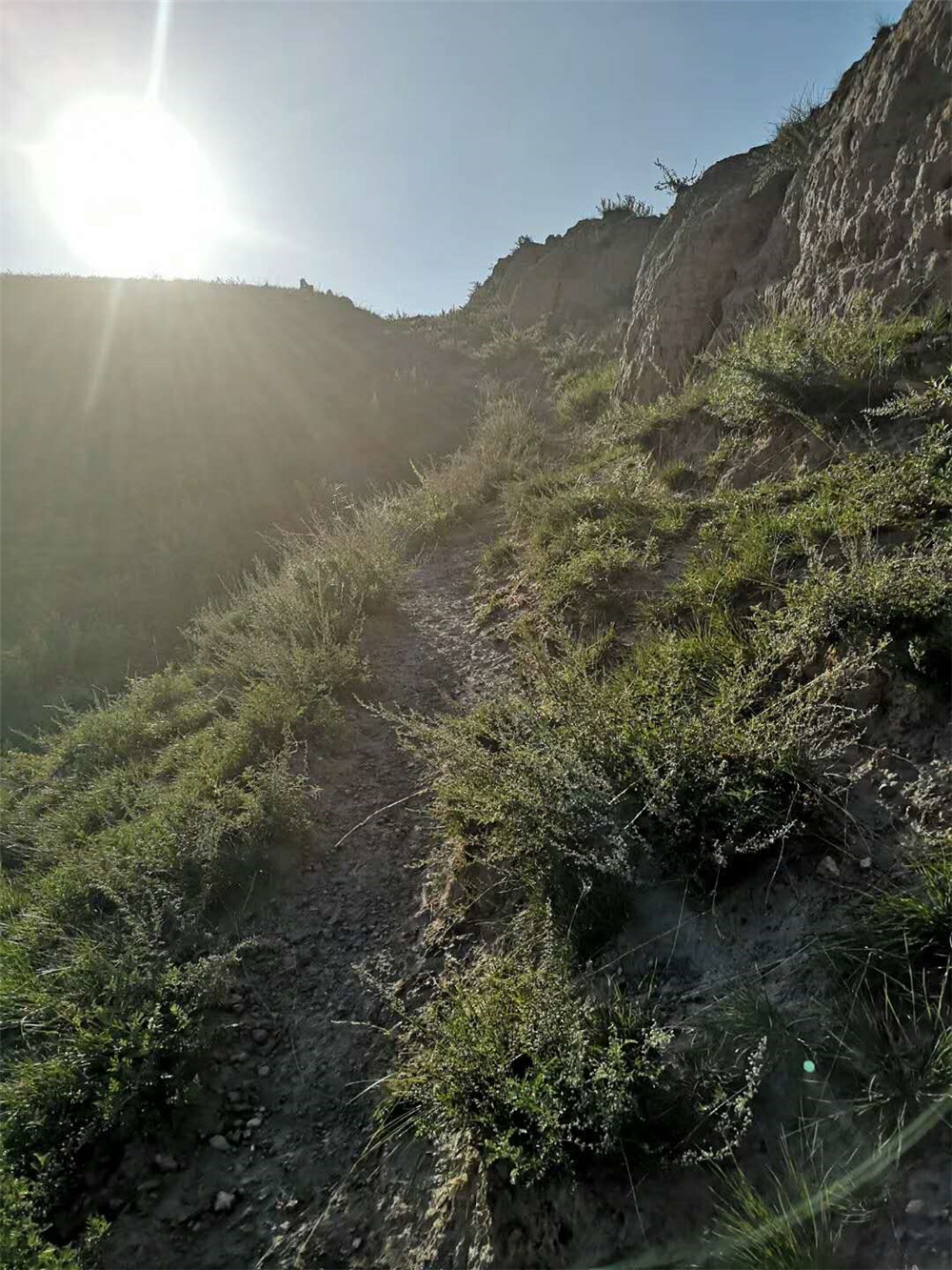 圖九:山的西坡,下山之路,圖片右上角為箭樓,逆光。