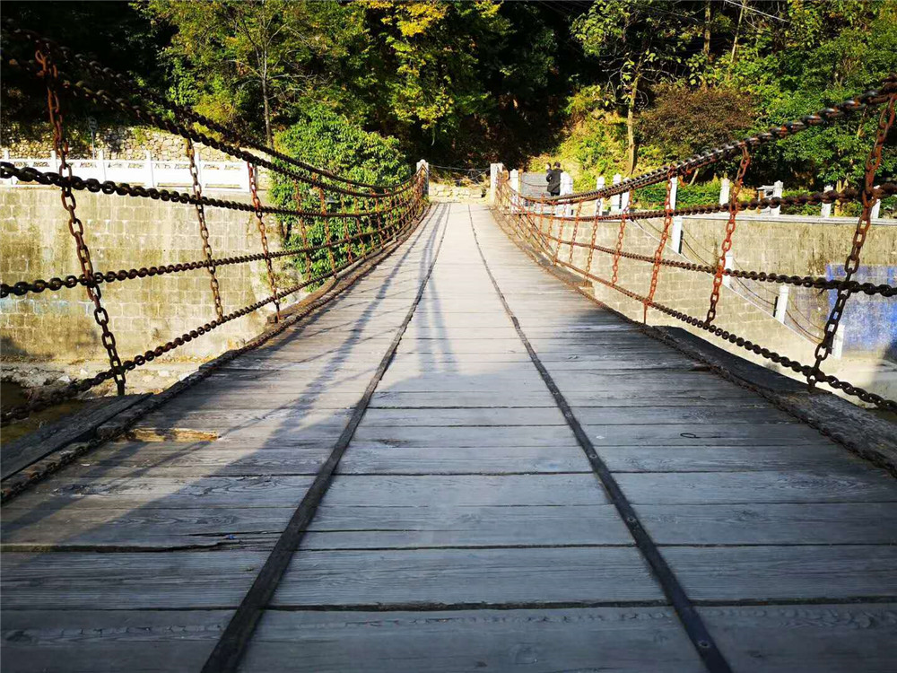圖八圖九為留壩縣馬道褒斜古道遺址:樊河鐵索橋