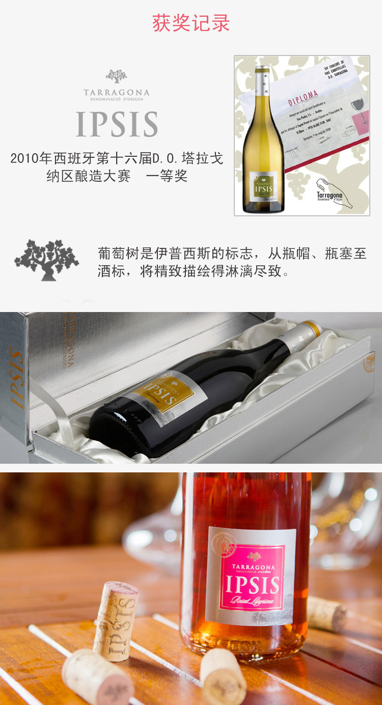 西班牙伊普西斯DO桃紅葡萄酒 ¥ 980.00 此款選用坦普拉尼洛和美樂混合釀制, 酒體呈現(xiàn)深沉而嫵媚的深櫻桃紅色, 鮮美的果香和花香, 成熟的紅漿果味伴隨著精致柔滑的單寧, 清爽易飲的酒體,口感飽滿,新鮮而可口, 配燒烤、辣菜都是不錯的選擇。 葡萄年份: 2010年 罐裝日期: 2011年12月17日 產(chǎn)地: 西班牙 產(chǎn)區(qū): 塔拉戈納 最佳飲用溫度: 8℃--10℃ 原料及輔料: 葡萄汁、二氧化硫 酒精度: 12.5%vol 葡萄品種: 坦普拉尼洛、美樂 等級: 西班牙法定產(chǎn)區(qū)級(D.O. TARRAGONA) 貯藏條件: 陰涼、避光、臥放 灌裝商: 巴特洛酒莊 凈含量: 750ml 產(chǎn)品詳情 產(chǎn)品屬性